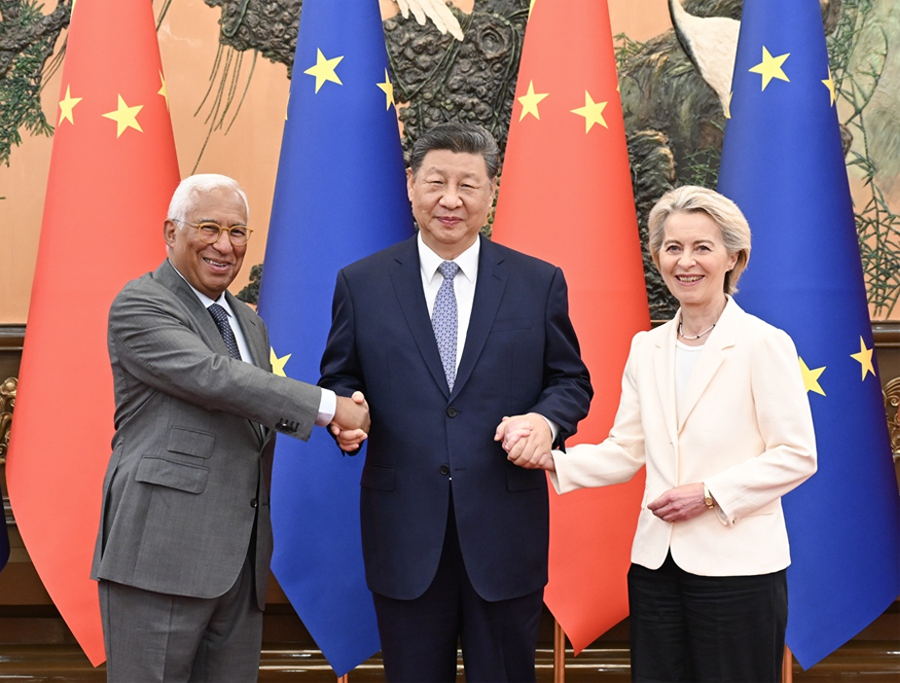 二是堅持開放合作,妥善處理分歧摩擦。歷史和現(xiàn)實證明,相互依賴不是風險,利益交融不是威脅,提升競爭力不能靠“筑墻設(shè)壘”,“脫鉤斷鏈”只會孤立自己?!敖狄蕾嚒辈荒軠p合作。中歐經(jīng)貿(mào)關(guān)系的本質(zhì)是優(yōu)勢互補、互利共贏,應該也完全能夠在發(fā)展中實現(xiàn)動態(tài)平衡。中國高質(zhì)量發(fā)展、高水平對外開放將為中歐合作提供新機遇、拓展新空間。中歐要深化綠色和數(shù)字伙伴關(guān)系,促進相互投資合作。希望歐方保持貿(mào)易和投資市場開放,克制使用限制性經(jīng)貿(mào)工具,為中國企業(yè)赴歐投資興業(yè)提供良好營商環(huán)境。